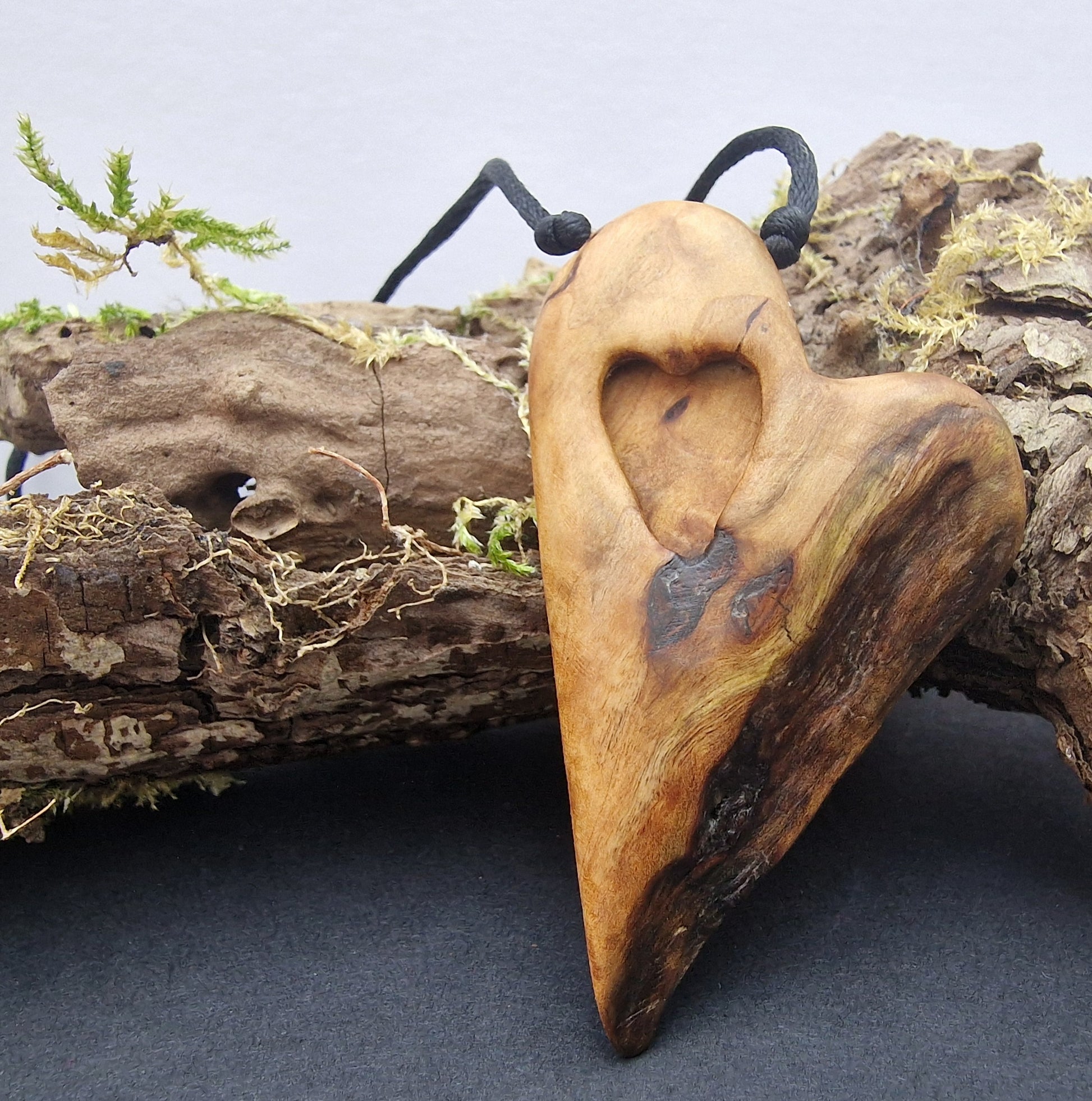 A journey from the forest to the ocean, then all the way to you - Carved Scottish drift wood creating a beautiful and unique piece of hand made jewellery. Supplied with a nylon cord