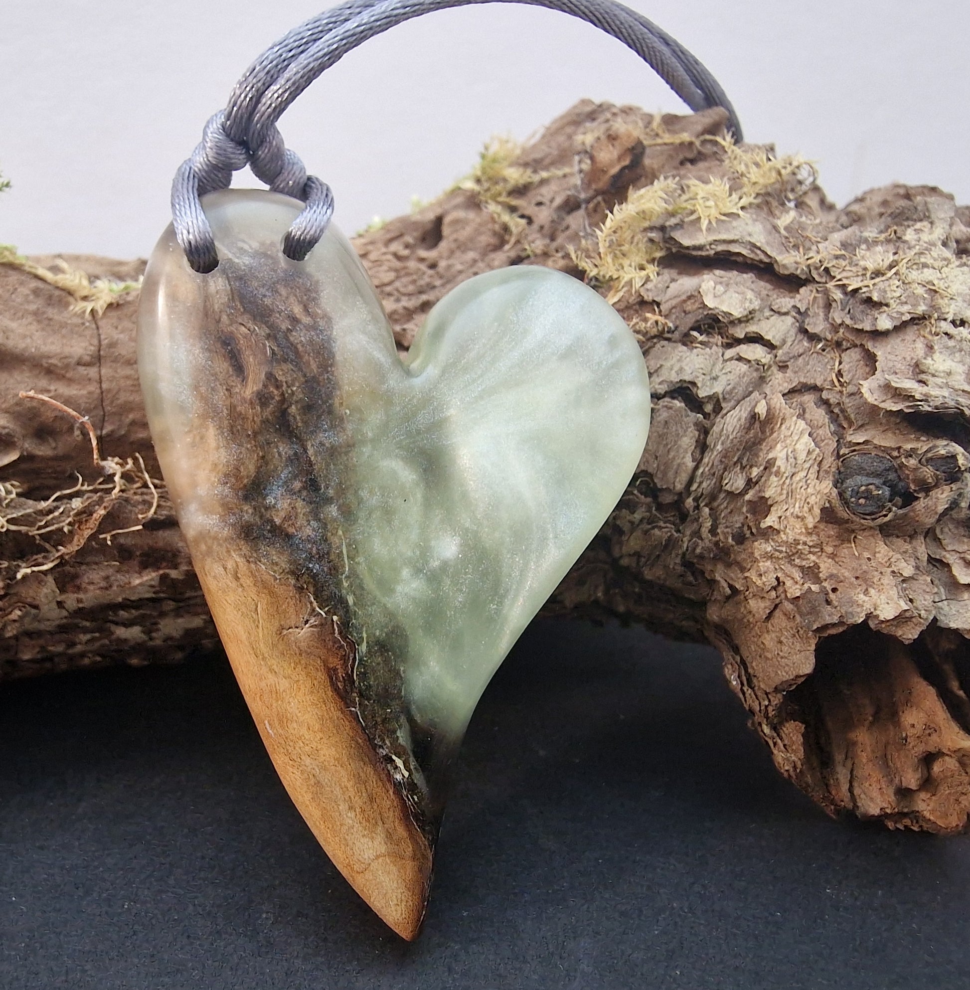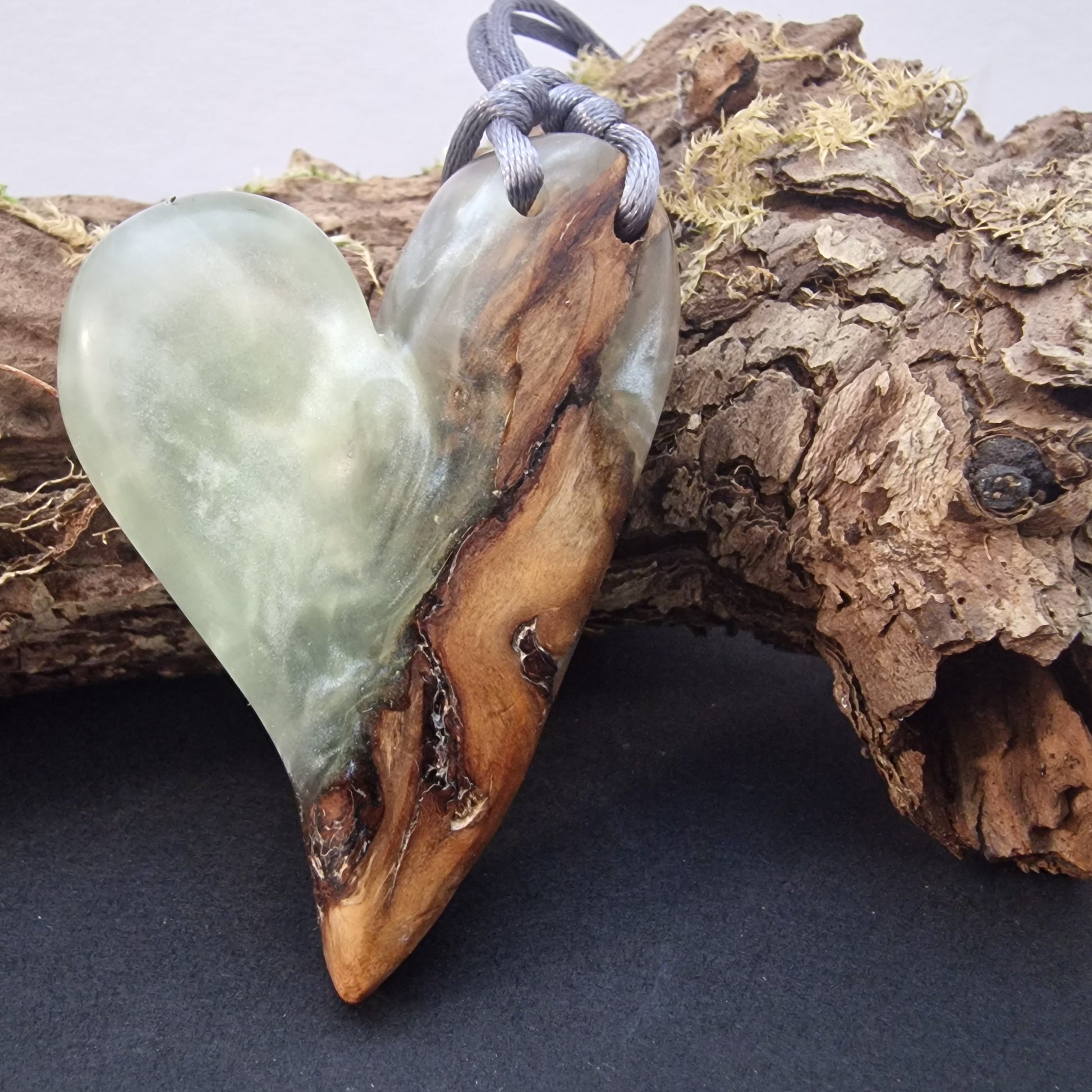 Resin blended with Scottish Beechwood to create a beautiful and unique piece of hand made jewellery. Supplied with a nylon cord