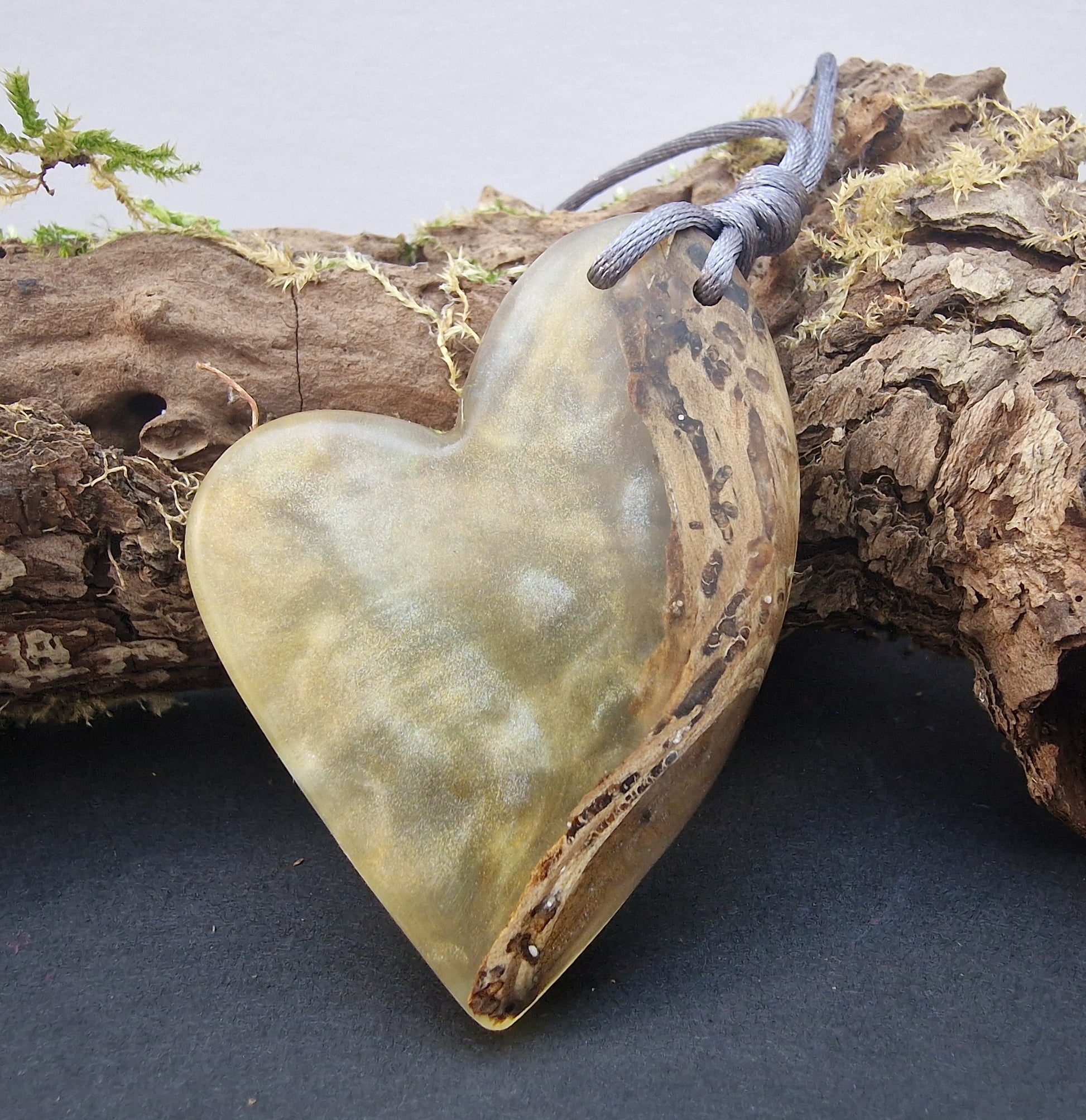 Resin blended with Scottish Beechwood to create a beautiful and unique piece of hand made jewellery. Supplied with a nylon cord