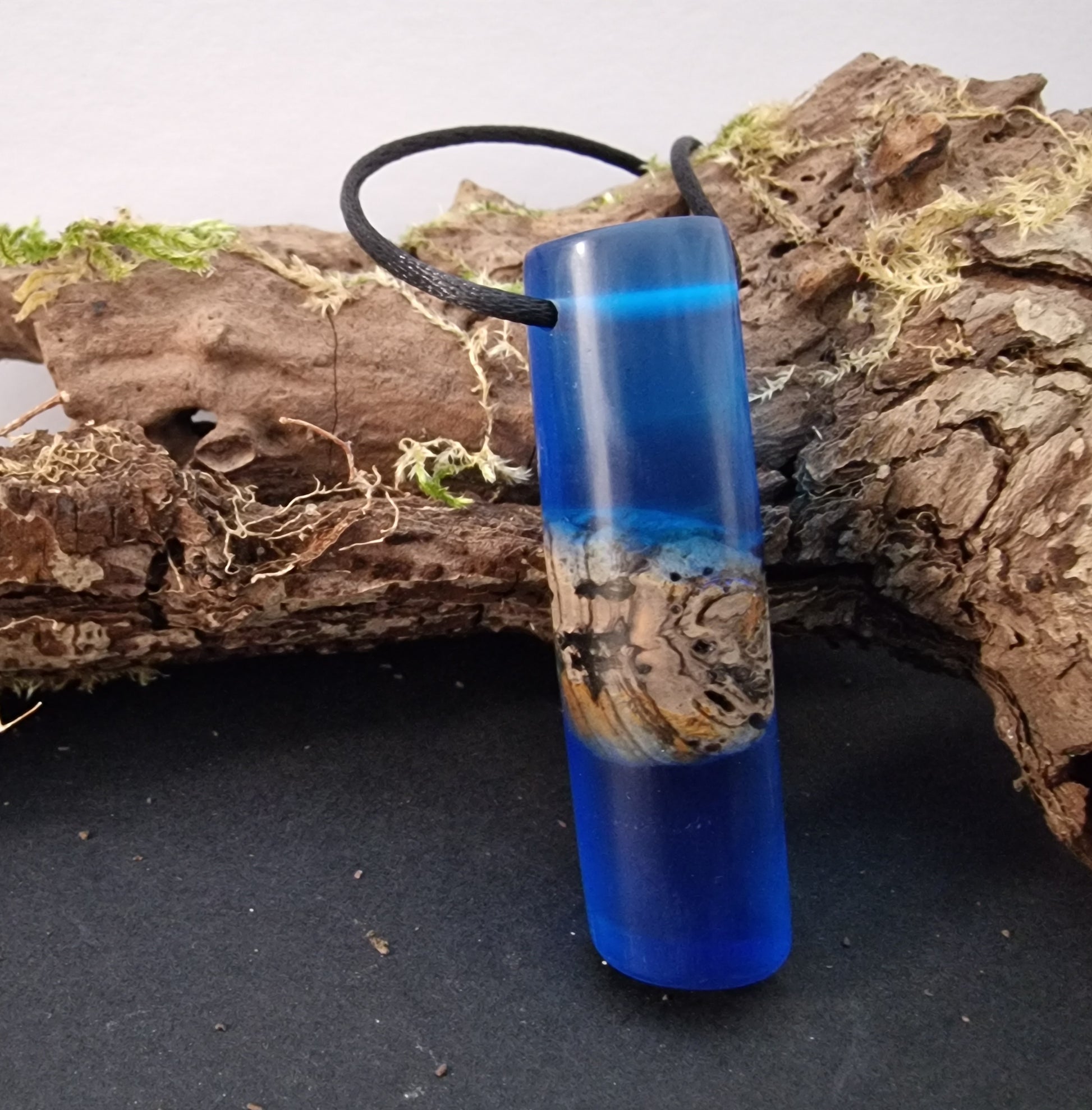 Resin blended with Scottish driftwood to create a beautiful and unique piece of hand made jewellery. Supplied with a nylon cord