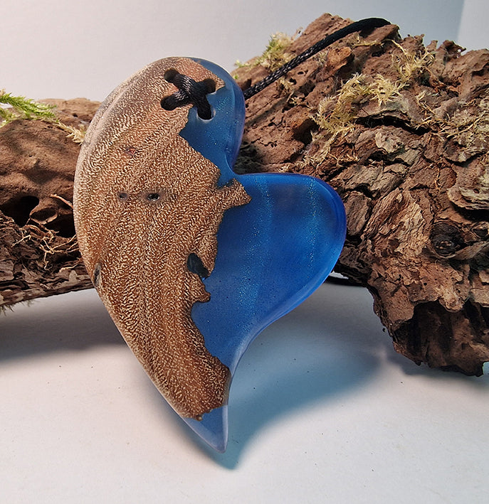 Resin blended with Australian hardwood to create a beautiful and unique piece of hand made jewellery. Supplied with a nylon cord