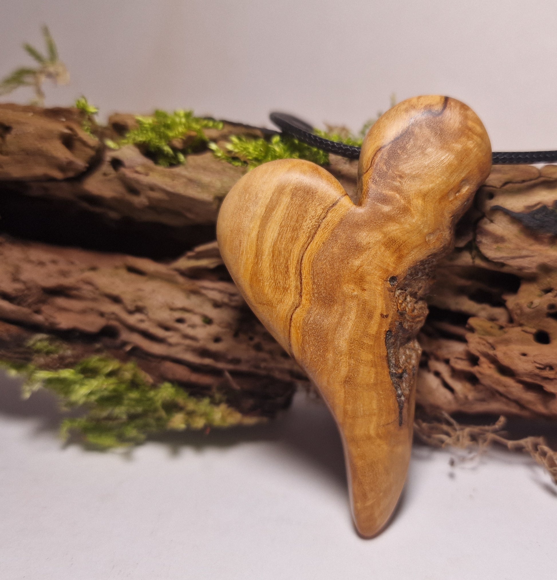 Olive root timber carved leaving the live edge, creating a beautiful and unique piece of hand made jewellery.