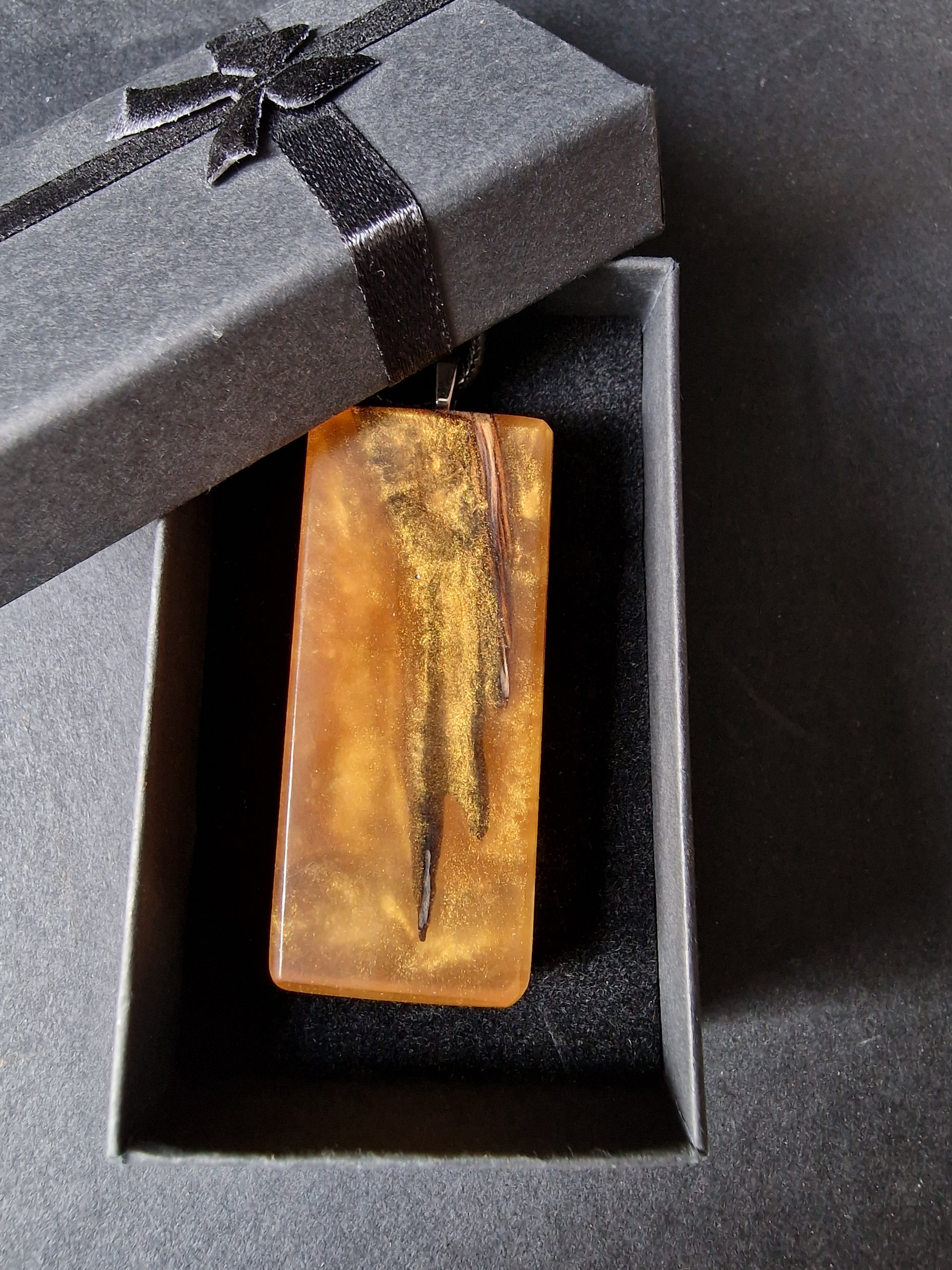 Resin blended with Australian hardwood to create a beautiful and unique piece of hand made jewellery.