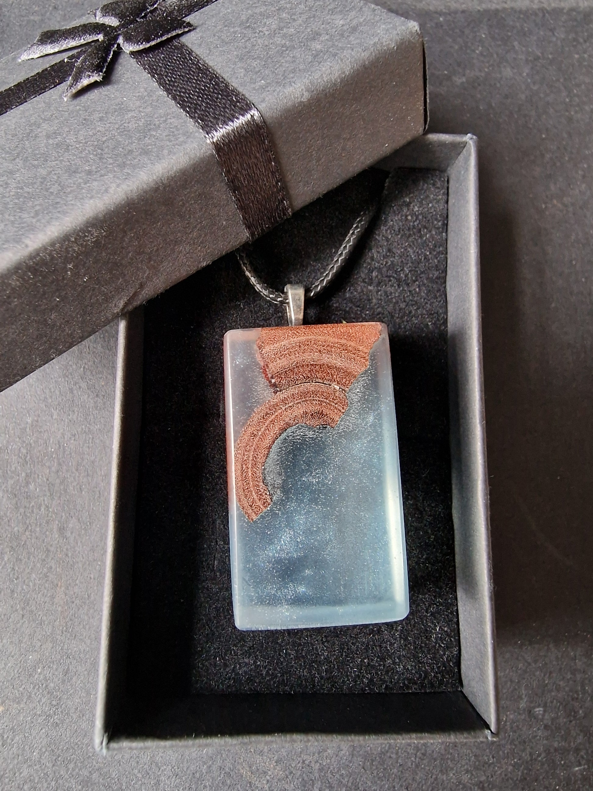 Resin blended with Australian hardwood to create a beautiful and unique piece of hand made jewellery.