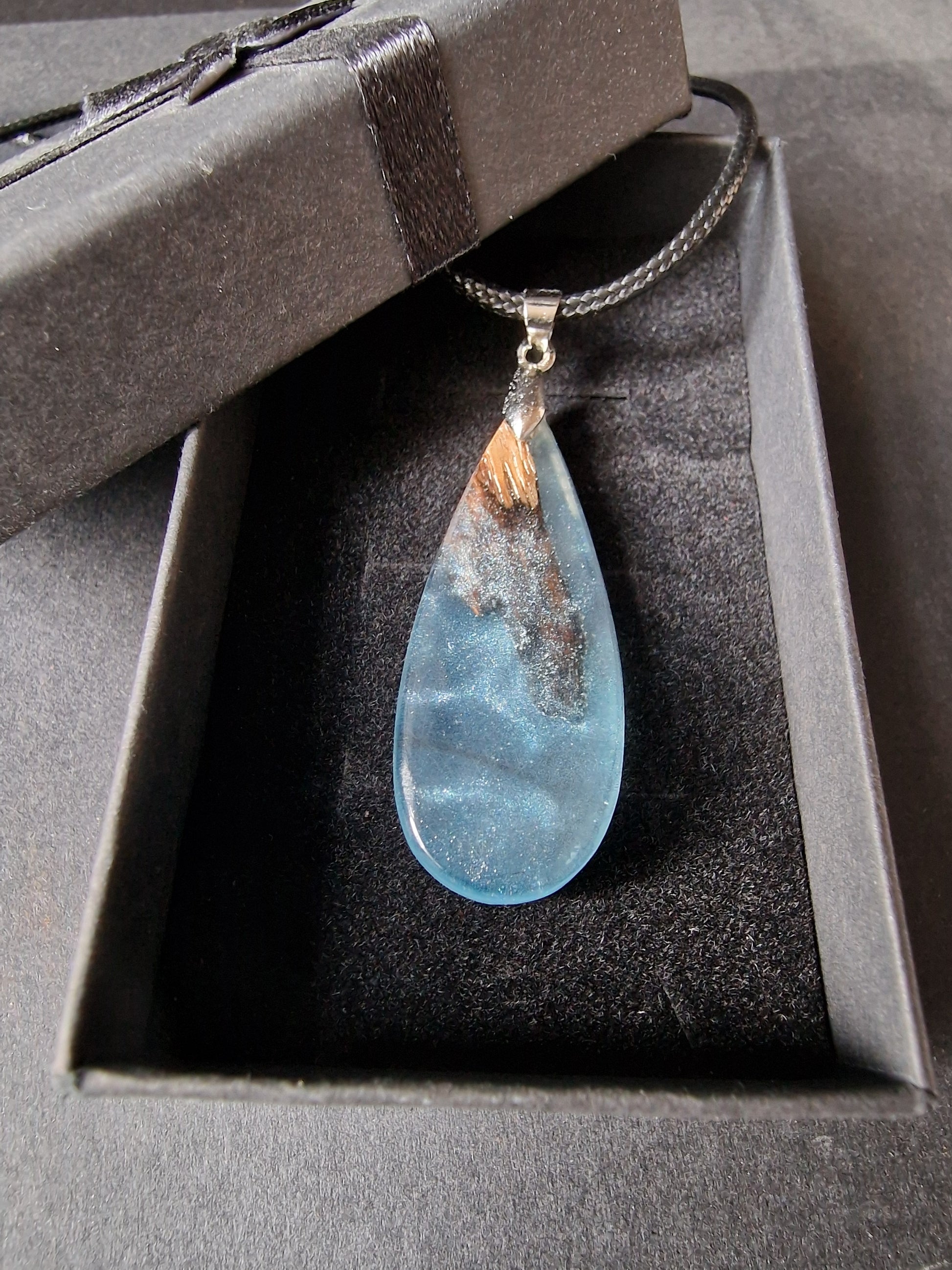 Resin blended with Australian hardwood to create a beautiful and unique piece of hand made jewellery.